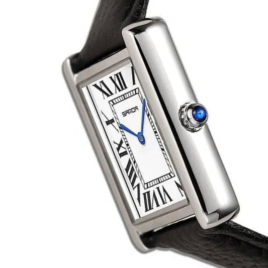 Quadratische Uhr aus Edelstahl und schwarzem Leder | Solstice